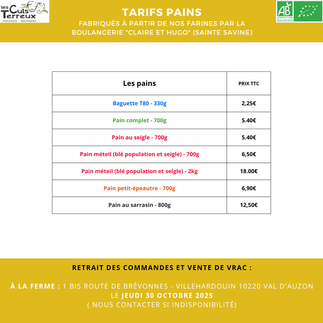 Pain, farine, lentilles et alimentation animaleđ„ - Vous pouvez passer vos commandes jusqu'au JEUDI 23 OCTOBRE en remplissant le formulaire en lien ci dessous. https://forms.gle/V34bhdGp54JoS5Lu8